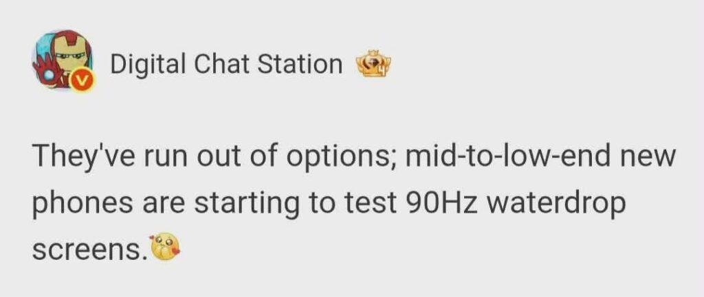 Famous tipster and leakster Digital Chat Station said on Weibo: “They’ve run out of options; mid-to-low end new phones are starting to test 90Hz waterdrop screens.” It means that companies are reverting to the notched options for their budget and midrange devices soon.